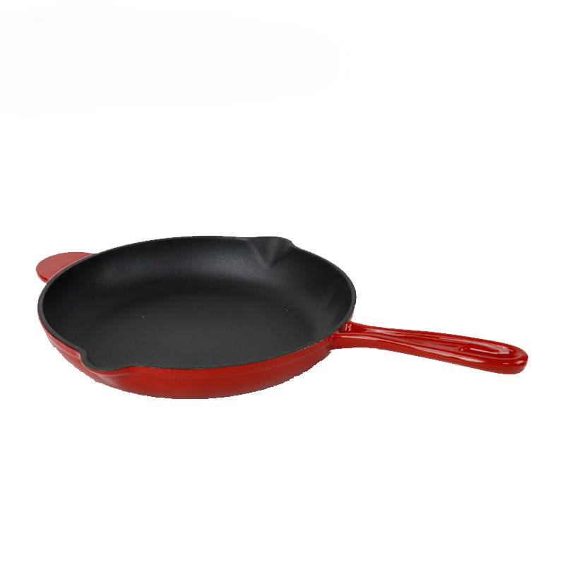 DURABLE CAST IRON ENAMELED: Our enameled cast iron grill pan uses 100% PFOA free, lead-free and cadmium-free enamel coating, and cast iron ecological materials, which is non-stick, anti-rust and anti-corrosion, easy to clean, and no retained flavors of food. The exquisite and beautiful cast iron enamel has heat resistance, cooking food can be heated evenly, with high wear resistance, the outer red enameled coating is, and the inner enamel is combined with cast iron.