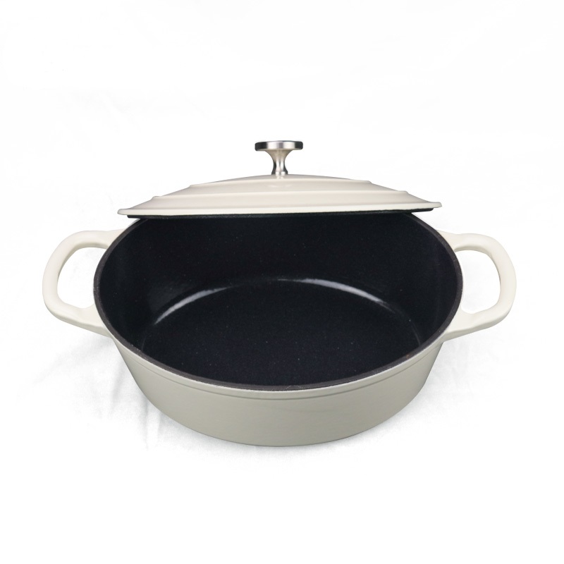 4.2 QT CAPACITY: The Cast Iron oval casserole with a 4.2 quart capacity made of heavy duty cast iron metal.