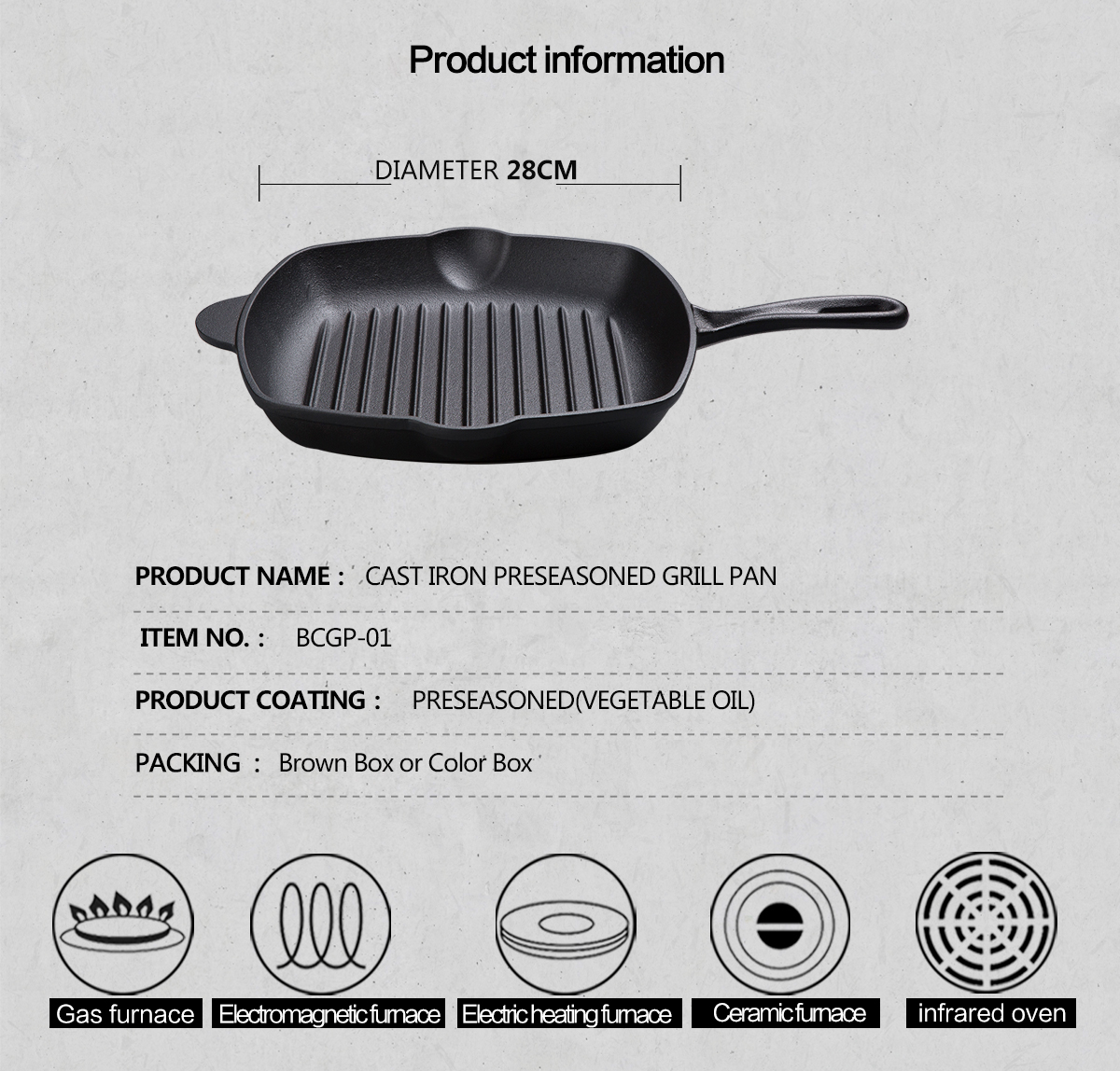 Cast iron classic pre-seasoned grill pan with 11 inch