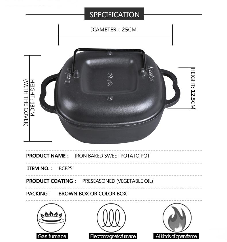 9.8” cast iron roaster baking potato pot