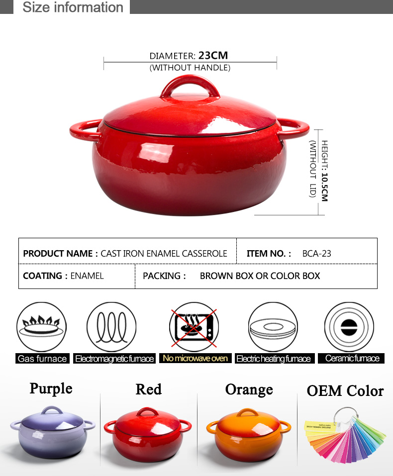 INDUCTION READY: These enamel cast iron pots are compatible w/ all heating methods. Works on gas, induction, glass ceramic & electric stove top. It is stain-resistant and easy to clean. Enjoy traditional casserole cooking style with the whole family.